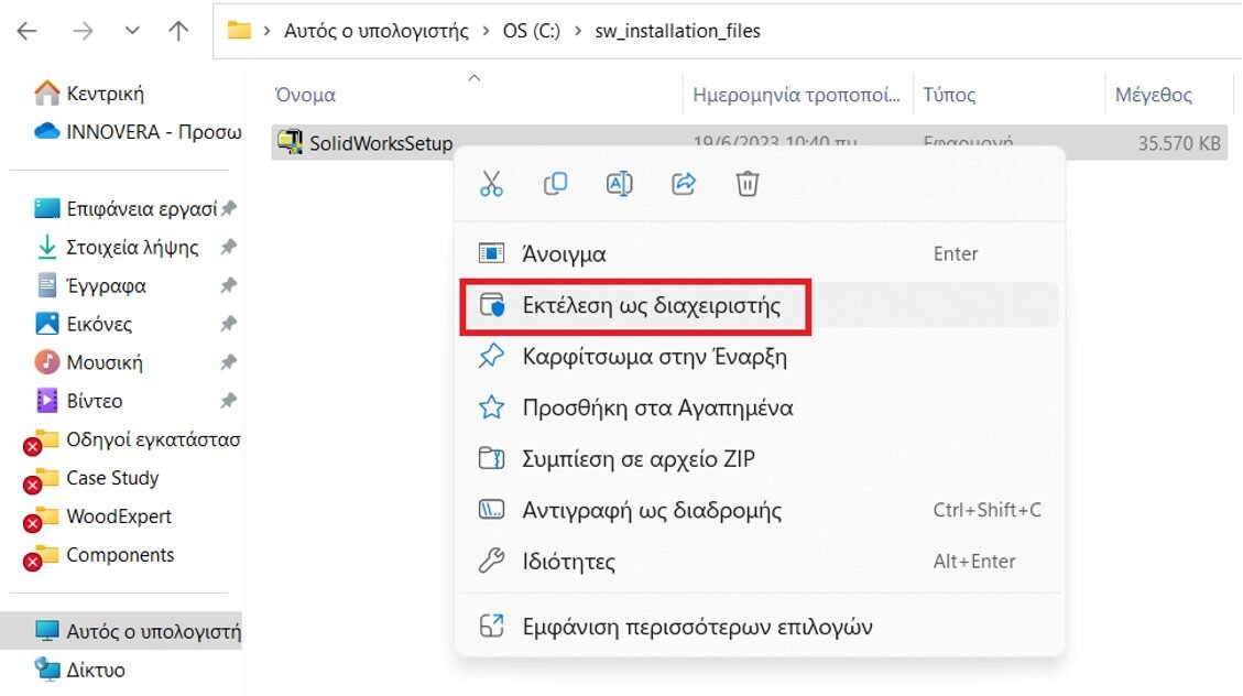 Οδηγός εγκατάστασης SOLIDWORKS Client