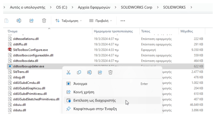 - Αναζητήστε το sldtoolboxupdater.exe στη διαδρομή C:\Program Files\SOLIDWORKS Corp\SOLIDWORKS.