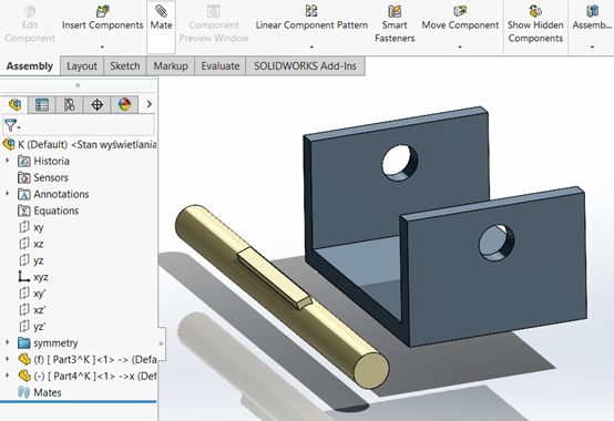 Στο ίδιο Assembly θα εισάγουμε ένα νέο εξάρτημα και θα εφαρμόσουμε mates με τη βοήθεια του Alt key.