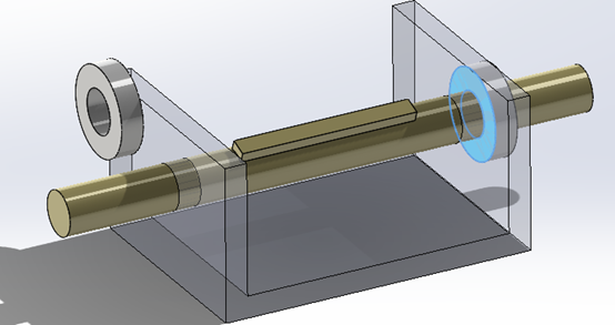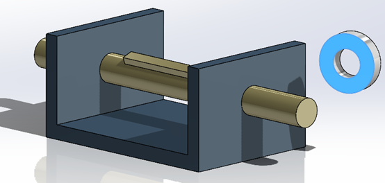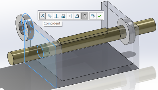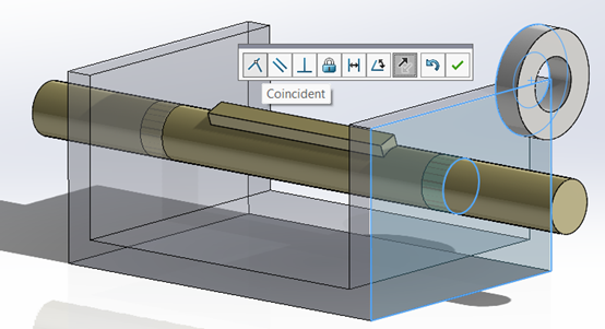 Με παρόμοιο τρόπο ορίζουμε και το Concentric mate. Επιλέγοντας την κυλινδρική επιφάνεια της ροδέλας και κάνοντας drag and drop πάνω από τον άξονα, το SOLIDWORKS τον αναγνωρίσει και τοποθετεί τη ροδέλα ομόκεντρα του άξονα.