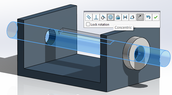 Τέλος, χρησιμοποιώντας είτε το Ctrl είτε το Alt ορίζουμε το concentric mate για να προκύψει το παρακάτω συναρμολόγημα.