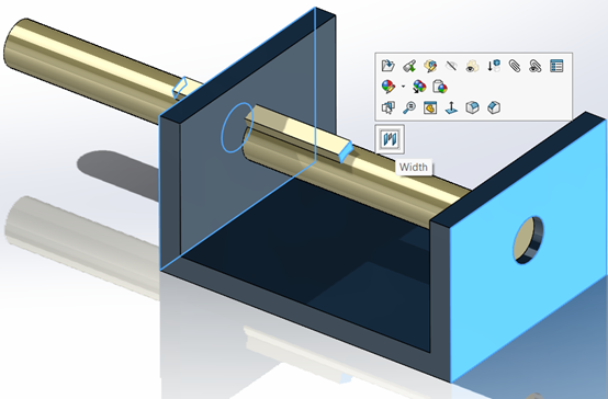 Ομοίως θα ορίσουμε και το Width mate μεταξύ των 2 εξαρτημάτων. Με Ctrl πατημένο επιλέγουμε τις επιφάνειες της εικόνας. Αφήνοντας το Ctrl επιλέγουμε το εικονίδιο του Width που εμφανίζεται και κάνουμε κλικ στο OK.
