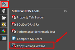 1. Ανοίξτε τον Copy Settings Wizard είτε από την αναζήτηση των windows είτε μέσα από SOLIDWORKS task pane.