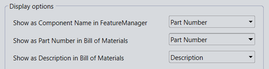 Μία άλλη δυνατότητα που έχετε είναι να ορίσετε την ονομασία με την οποία θα εμφανίζεται το κάθε component βάσει άλλων properties αντί του «Configuration Name». Σε καθένα από αυτά υπάρχουν 3 κενά πεδία, αυτά των Part Number, Description και Comment. Για το εξάρτημα που δημιουργήσαμε προηγουμένως εισάγουμε τις παρακάτω τιμές.