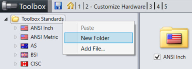 Μέσα από το Customer Hardware υπάρχει η δυνατότητα δημιουργίας νέου φακέλου. Στο συγκεκριμένο παράδειγμα κάνοντας δεξί κλικ στο Toolbox Standards και επιλέγοντας New Folder δημιουργούμε ένα νέο φάκελο στον οποίο δίνουμε την ονομασία Company’s folder.