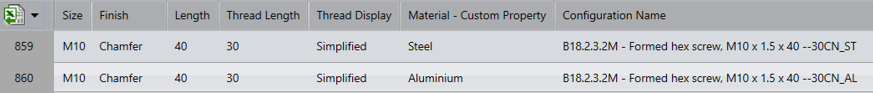 Παρατηρούμε πως για κάθε configuration έχουν δημιουργηθεί 2 νέα που διακρίνονται ως προς το Material – Custom Property (Steel και Aluminium).