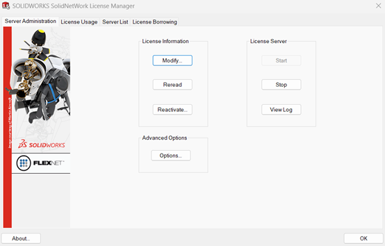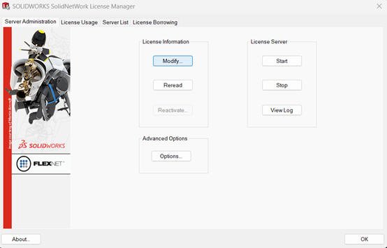 1. Για να ενεργοποιήσετε μετέπειτα μια άδεια θα χρειαστεί να μεταβείτε ξανά στον SolidNetWork License Manager Server και στην καρτέλα Server Administrator να επιλέξετε «Modify».