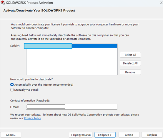 Πώς να κάνετε Deactivate/Activate μια SOLIDWORKS Network License
