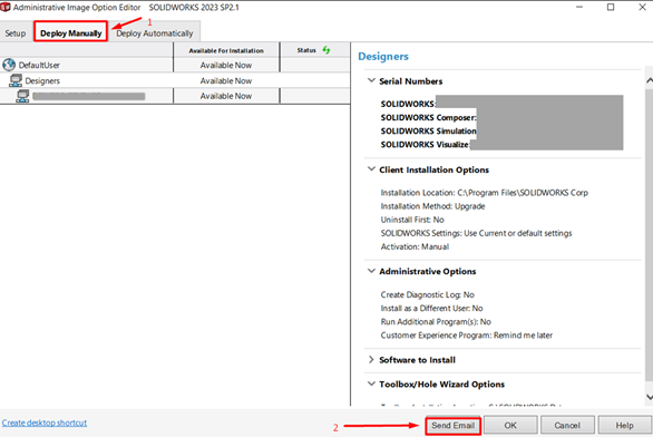 4. Με το που κλείσει το dialog box του προηγούμενου βήματος μπορείτε να στείλετε emails σε χρήστες που θέλετε να εγκαταστήσουν το SOLIDWORKS. Μετά από αυτό, οι χρήστες μπορούν να κάνουν διπλό κλικ στον σύνδεσμο για να βρουν το network location για το αρχείο hta.