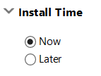 3. Κάτω από το Install Time επιλέγουμε το Now για να τρέξει η εγκατάσταση άμεσα ή το Later για να ορίσουμε συγκεκριμένη ημερομηνία και ώρα για το deployment.