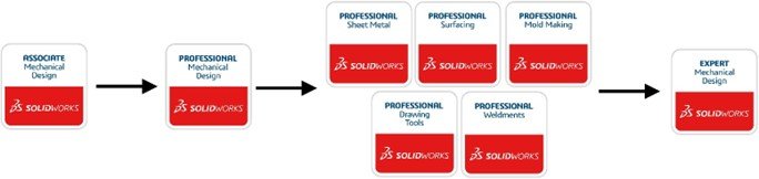 Αν μιλάμε κυρίως για το mechanical design, οι πιστοποιήσεις του SOLIDWORKS έχουν την μορφή του διαγράμματος, έχοντας σα βάση την εξέταση του CSWA, συνεχίζοντας στην CSWP και από εκεί και έπειτα υπάρχουν οι advanced πιστοποιήσεις του CSWP που μπορούν να οδηγήσουν κάποιον στην εξέταση CSWE. Περισσότερα για κάθε εξέταση μπορείτε να μάθετε εδώ.