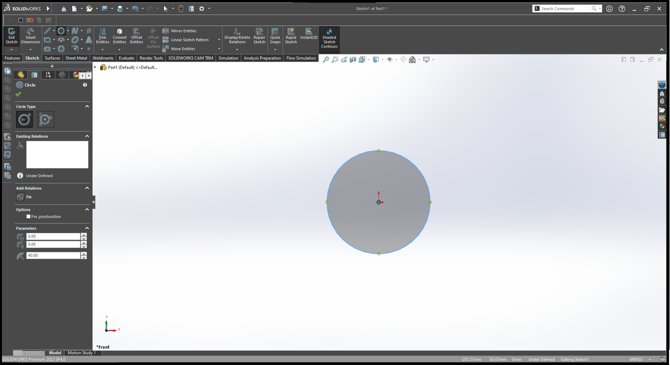 Όταν καταγράφεται μία νέα μακροεντολή, ενδείκνυται όπως είδαμε και παραπάνω να ξεκινήσετε με ένα νέο ή ένα άδειο part file στο SolidWorks. Αυτό εξασφαλίζει ότι η συγκεκριμένη καταγραφή δε θα περιλαμβάνει ανεπιθύμητες ενέργειες ή ρυθμίσεις.
