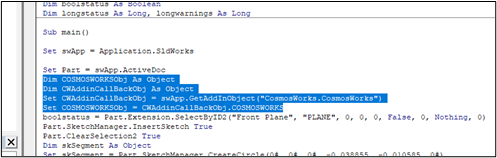 Εκτελεί τρία βήματα: Ο χρήστης επιλέγει τον τύπο της μακροεντολής, εισάγει μια έγκυρη διαδρομή αρχείου και ονομάζει τη μακροεντολή. Στη συνέχεια, το αρχείο μακροεντολών συμπληρώνεται με τυπικές γραμμές κώδικα προγραμματισμού για τη σύνδεση με το λογισμικό SOLIDWORKS. Τέλος, ο επεξεργαστής VBA ή VSTA ανοίγει το αρχείο μακροεντολών για να ξεκινήσει ο χρήστης τον προγραμματισμό.