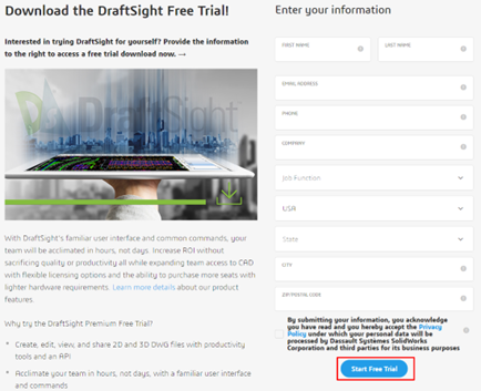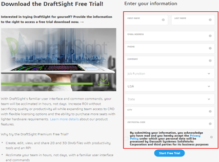 Ακολουθήστε τα παρακάτω απλά βήματα για να εγκαταστήσετε το Draftsight στην trial έκδοση.