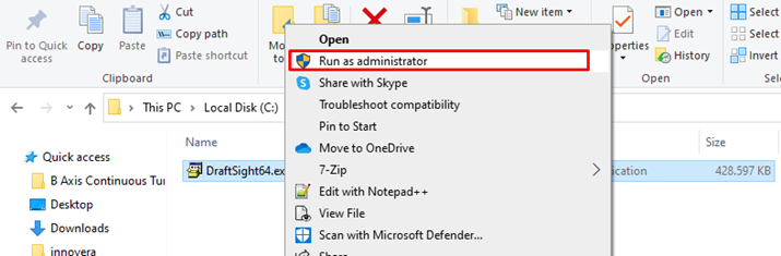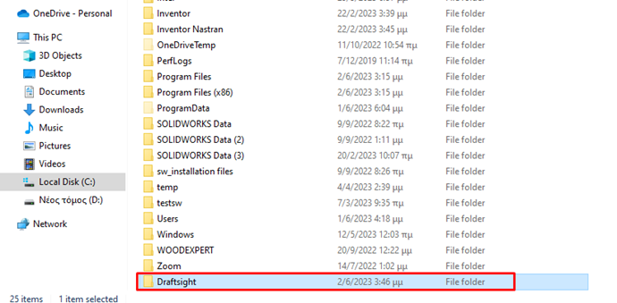 Βήμα 6. Είναι καλό να δημιουργήσετε ένα καινούριο φάκελο στο δίσκο C (πχ. με όνομα DRAFTSIGHT ) και να εισάγετε το αρχείο που μόλις κατέβηκε.