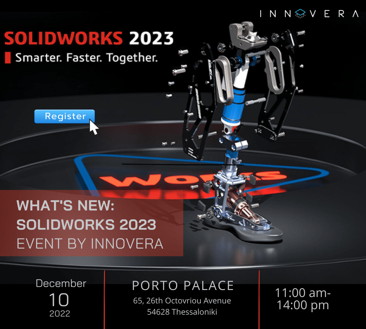 what’s New SOLIDWORKS 2023By Innovera Facebook Instagram Linkedin Youtube Η ομάδα της INNOVERA σας προσκαλεί στην ημερίδα What’s New SOLIDWORKS 2023 by INNOVERA, για τη παρουσίαση των νέων τεχνολογιών και δυνατοτήτων της σουίτας λογισμικών της Dassault Systems. Η εκδήλωση θα γίνει το Σάββατο 10 Δεκεμβρίου 2022 στις 11π.μ. στο PORTO PALACE στη Θεσσαλονίκη. Σε αυτή την […]
