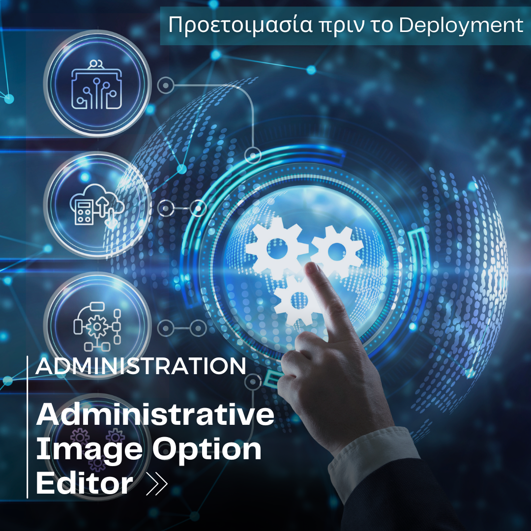 Facebook Linkedin Instagram Youtube Administrative Image Option Editor Author Vasileios Vekis Category Administration Date May 8, 2023 Το Administrative Image Option Editor, επιτρέπει την τροποποίηση των παραμέτρων και των ρυθμίσεων ενός administrative image για μεμονωμένους υπολογιστές αλλά και για ομάδες υπολογιστών. Αφού δημιουργήσετε ένα Administrative Image, Μπορείτε να έχετε πρόσβαση στο Editor τρέχοντας το sldAdminOptionEditor.exe που βρίσκεται στο administrative […]