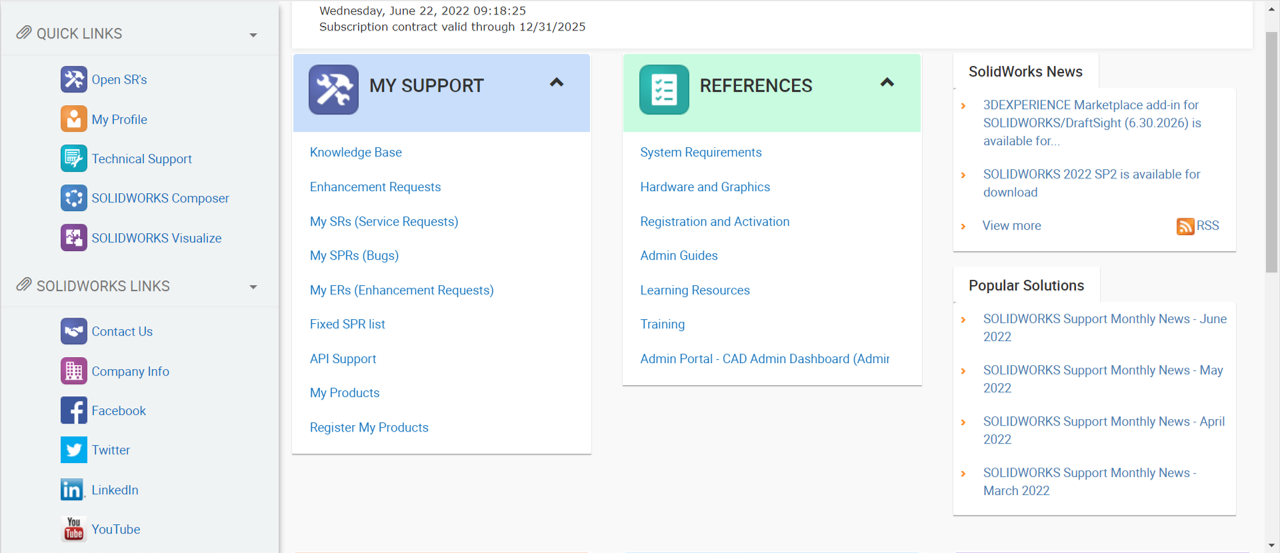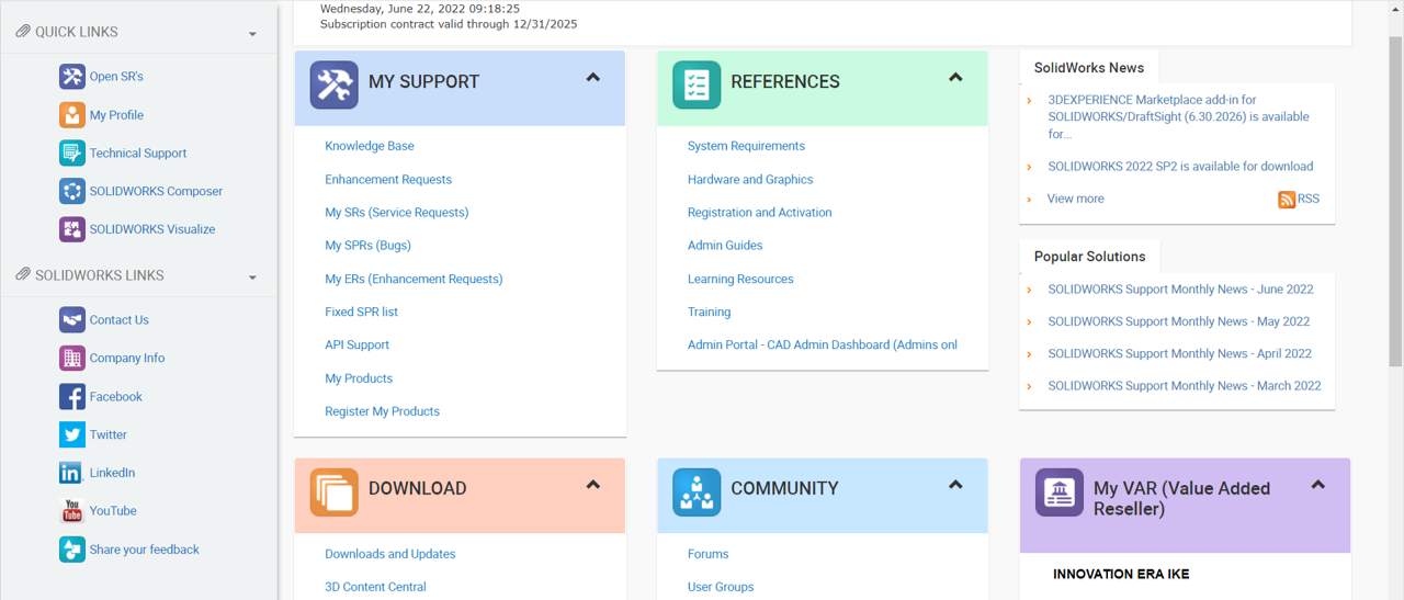 4. Όταν πάτε πίσω θα πρέπει τώρα να έχετε πλήρη πρόσβαση σε όλες τις δυνατότητες στo SOLIDWORKS Customer Portal.