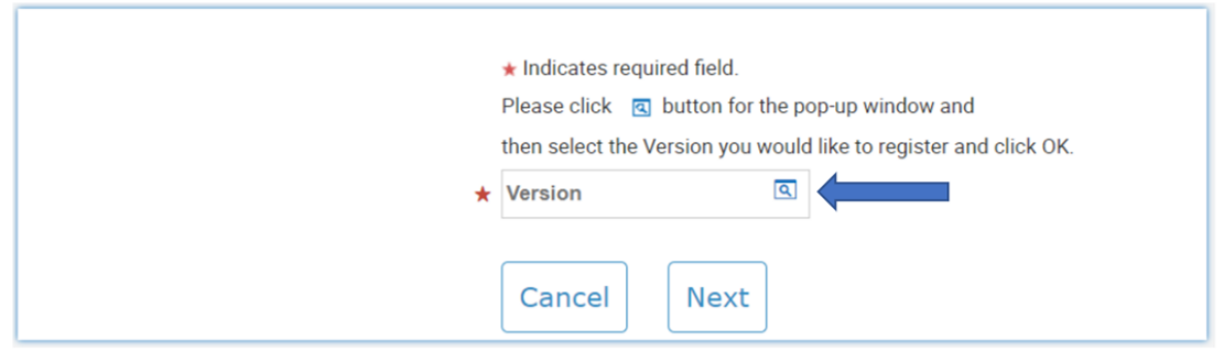 3. Θα πρέπει να επιλέξετε το κουμπί αναζήτησης που φαίνεται στην εικόνα για να επιλέξτε την έκδοση SOLIDWORKS που θέλετε να εγγραφείτε, θα πρέπει πάντα να επιλέγετε την πιο πρόσφατη διαθέσιμη έκδοση και μετά να επιλέξετε Next: