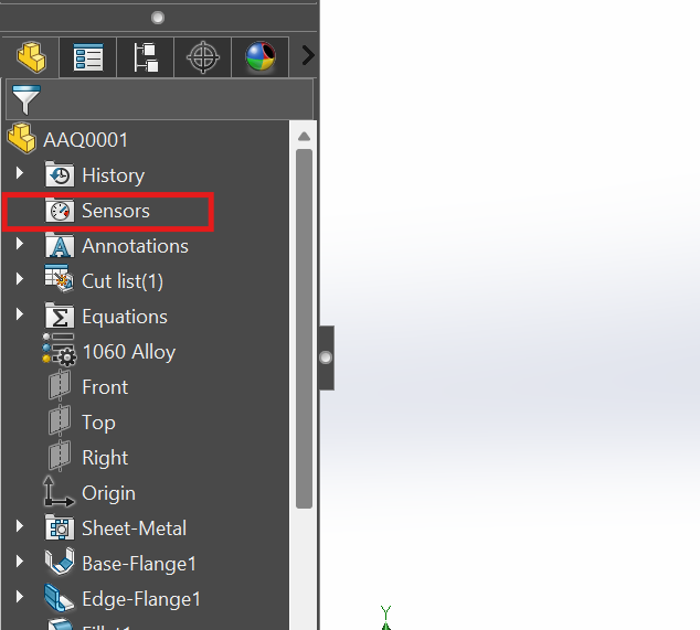 Οι αισθητήρες (sensors) στο SOLIDWORKS δημιουργούνται γρήγορα και εύκολα. Μπορείτε να έχετε πρόσβαση σε αυτούς απευθείας από το δέντρο σχεδίασης στο feature manager. Πατώντας απλά δεξί κλικ πάνω στο αντίστοιχο εικονίδιο και στην συνέχεια πατώντας “Add sensor…” αποκτάτε πρόσβαση στο interface με το οποίο θα δημιουργήσετε ένα νέο sensor.