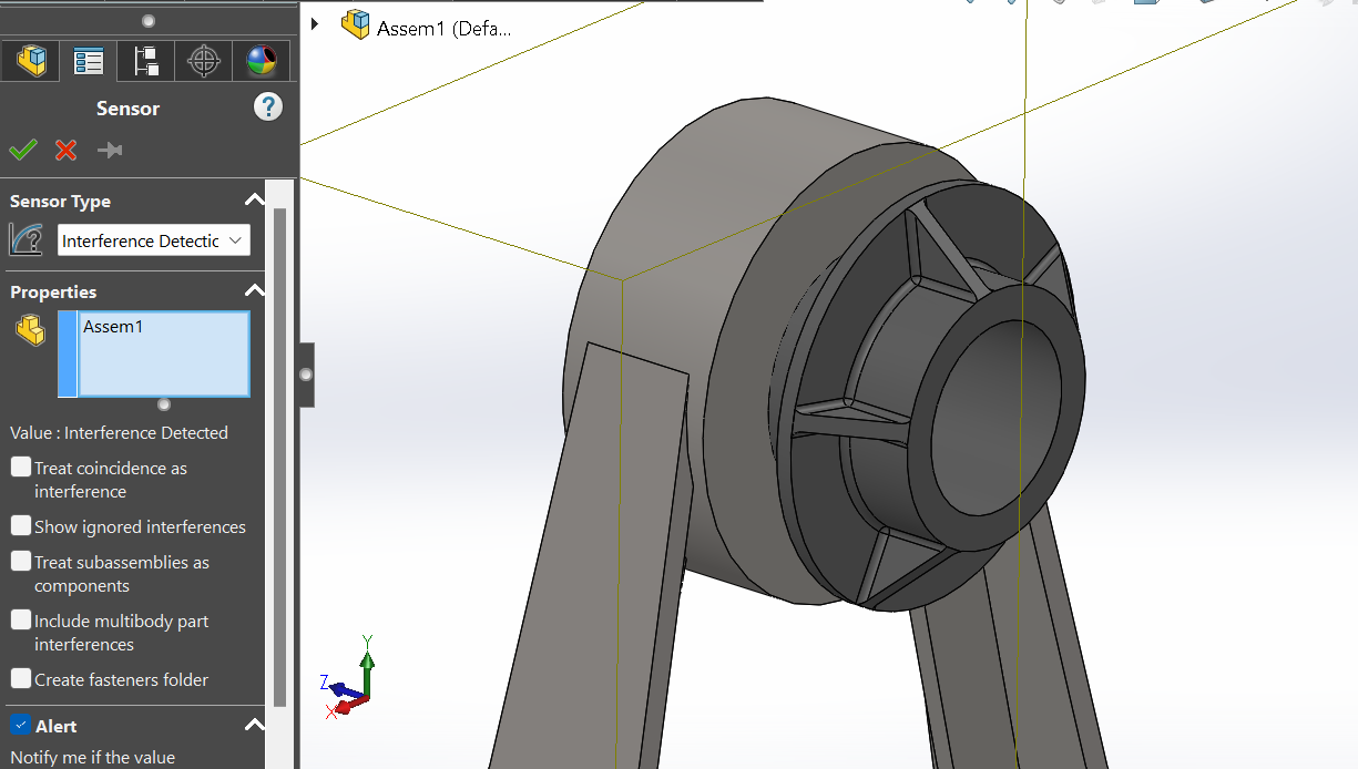 Οι αισθητήρες παρεμβολής (Interference sensors ) λειτουργούν όπως ακριβώς θα περίμενε κάποιος. Έχουν τη δυνατότητα επιλογής μεμονωμένων εξαρτημάτων ή ολόκληρου του συγκροτήματος. Οι αισθητήρες παρεμβολής έχουν επιλογές για την αντιμετώπιση της απλής επαφής ως παρεμβολή ή τη δημιουργία fasteners folder.
