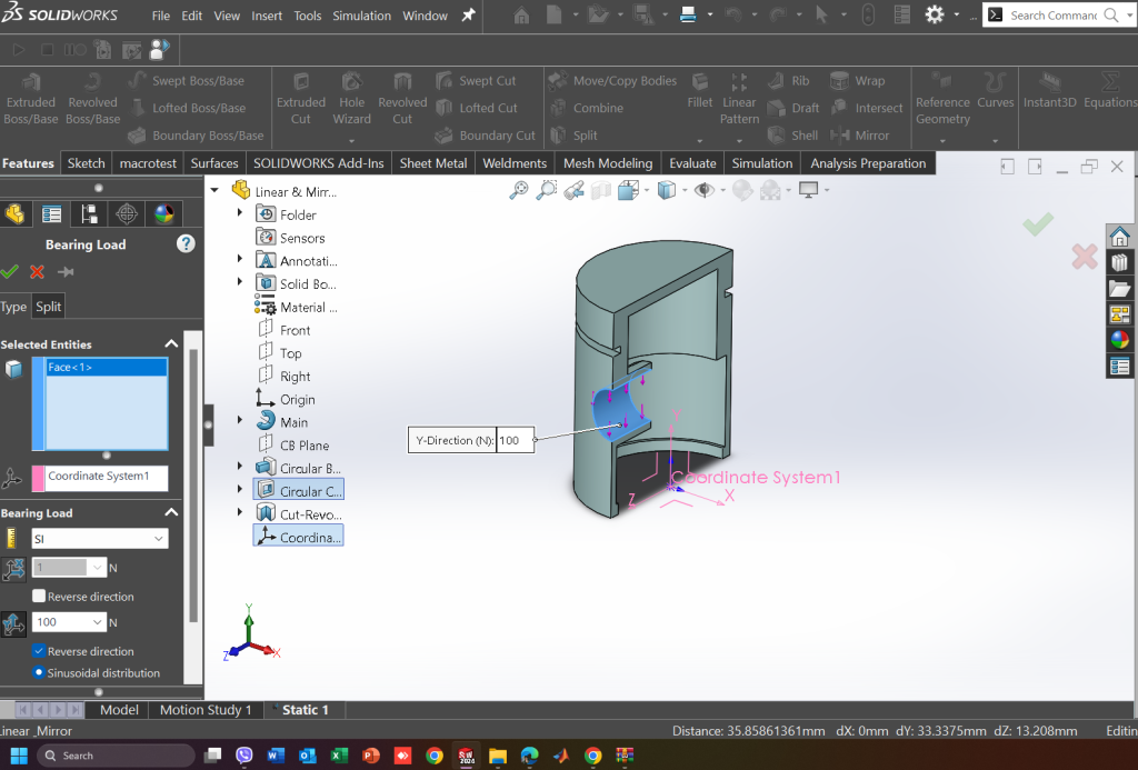 Αυτά ήταν τα απαραίτητα βήματα για τον ορισμό ενός απλού φορτίου. Ένας έμπειρος αναλυτής μπορεί με αυτή την επιλογή να ολοκληρώσει μεγάλο ποσοστό των αναλύσεων του καθώς μπορεί να κατανοήσει που και πως εφαρμόζονται δυνάμεις σε μία κατασκευή. Παρόλα αυτά το SOLIDWORKS Simulation στην προσπάθεια να μειώσει τον χρόνο εκμάθησης του, αλλά και να μειώσει τον χρόνο που απαιτείται για την προετοιμασία μίας ανάλυσης ακόμα και για έναν έμπειρο χρήστη, προσφέρει μία πληθόρα επιλογών με ένα εύχρηστο και φιλικό ως προς τον χρήστη Interface.