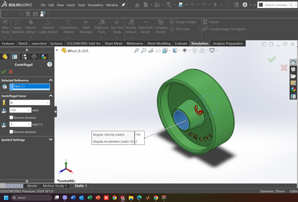 Εφαρμόζει γωνιακή ταχύτητα και επιτάχυνση σε ένα εξάρτημα ή συναρμολόγημα.
