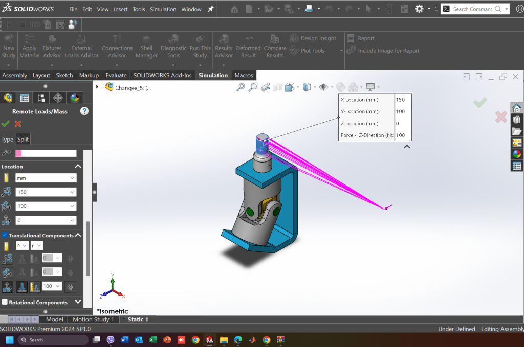 Στα προηγούμενα άρθρα αυτής της σειράς παρουσιάστηκε η μεθοδολογία και η φιλοσοφία πίσω από τον περιορισμό κίνησης του μοντέλου που θα αναλυθεί. Τώρα αυτό που ακολουθεί είναι και ο βασικότερος παράγοντας ο οποίος δημιουργεί τις τάσεις στο μοντέλο, ο οποίος είναι τα φορτία της που ασκούνται στο μοντέλο. Τα φορτία σε αναλύσεις πεπερασμένων είναι από τις σημαντικότερες παραμέτρους που πρέπει να οριστούν προκειμένου να δημιουργηθούν τάσεις και έτσι να μελετηθεί η καταπόνηση του υπό ρεαλιστικές συνθήκες λειτουργίας.