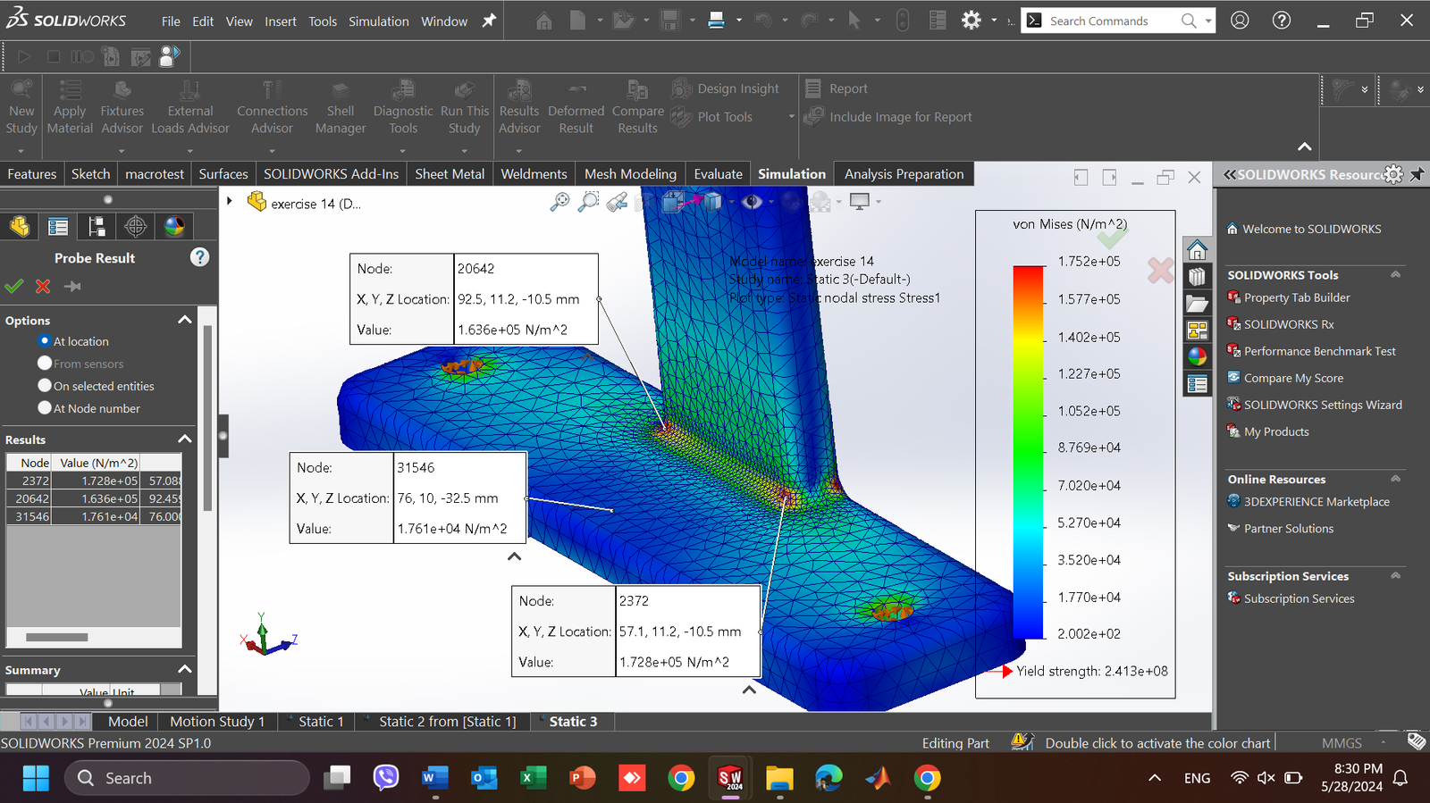 Τώρα φτάνει ο πραγματικός λόγος εφαρμογής των πεπερασμένων στοιχείων. Είναι η στιγμή όπου ο χρήστης θα πρέπει να αξιολογήσει τα αποτελέσματα προκειμένου να αναλογιστεί τα επόμενα του βήματα, είτε αυτά είναι να ξανατρέξει την ανάλυση σε περίπτωση που δεν έχουν εξαχθεί ικανοποιητικά αποτελέσματα είτε να πάρει τελικές σχεδιαστικές αποφάσεις για το προϊόν του. Τα κυριότερα αποτελέσματα που ενδιαφέρουν περισσότερο τους αναλυτές είναι οι τάσεις που αναπτύσσονται κατά την καταπόνηση, η συμπεριφορά του παραμορφωμένου εξαρτήματος, και ο συντελεστής ασφαλείας της κατασκευής.