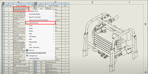 Τα drawings των assemblies και των parts πλέον μπορούν να ανοίξουν με 2 κλικ απευθείας από ένα Higher Level Drawing. Το άνοιγμα των drawings μπορεί να γίνει από το περιβάλλον γραφικών, τον Feature manager ακόμα και από κάποιο table βοηθώντας μας να έχουμε άμεση πρόσβαση στα drawings μας χωρίς να χρειάζεται να αναζητήσουμε referenced parts ή assembly models. Αυτή η άμεση πρόσβαση στα ζητούμενα drawings βελτιώνει τόσο την εμπειρία του χρήστη ενώ ταυτόχρονα απλοποιεί και μειώνει τον χρόνο εργασίας μας.