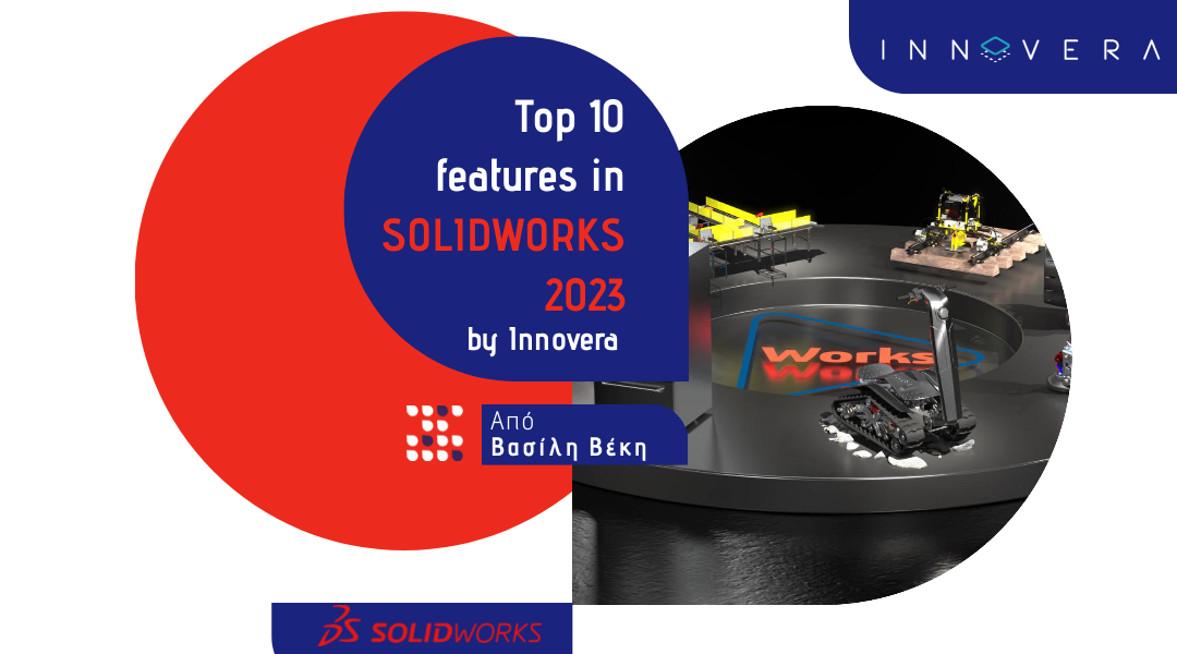 Με το SOLIDWORKS 2023 να βρίσκεται πλέον στο κατώφλι μας, ήρθε η στιγμή να μοιραστούμε μαζί σας τις αγαπημένες μας λειτουργίες και βελτιώσεις που έρχονται με το λογισμικό της νέας χρονιάς. Με την έκδοση του SOLIDWORKS 2023 βλέπουμε πολλές βελτιώσεις στον τρόπο εργασίας μας με το SOLIDWORKS. Parts, Assemblies, Drawings αλλά και η γενική εμπειρία του χρήστη με το λογισμικό αλλάζουν αισθητά με νέες επιλογές αλλά κα με τη βελτίωση προηγουμένων. Η Ομάδα της Innovera διάλεξε τα 10 πιο ενδιαφέροντα features για την έκδοση 2023 και τα μοιραζόμαστε μαζί σας σε αυτό το άρθρο, ξεκινώντας από το νούμερο 10 μέχρι και την νούμερο 1 επιλογή μας.