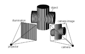 Ο προβολέας εκπέμπει μια δομημένη εικόνα πάνω στο αντικείμενο, όπως γραμμές που τρέχουν οριζόντια ή κάθετα, ή ένα μοτίβο πλέγματος. Αν η κάμερα βρισκόταν στην ίδια θέση και στον ίδιο προσανατολισμό με τον προβολέα, θα κατέγραφε μόνο την προβαλλόμενη εικόνα. Ωστόσο, η τοποθέτηση της κάμερας σε άλλο σημείο αποκαλύπτει παραμόρφωση των γεωμετρικών ιδιοτήτων της εικόνας λόγω του σχήματος του αντικειμένου.