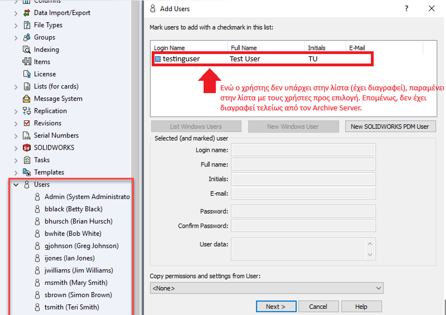 Πως διαγράφω μόνιμα έναν χρήστη από το SOLIDWORKS PDM