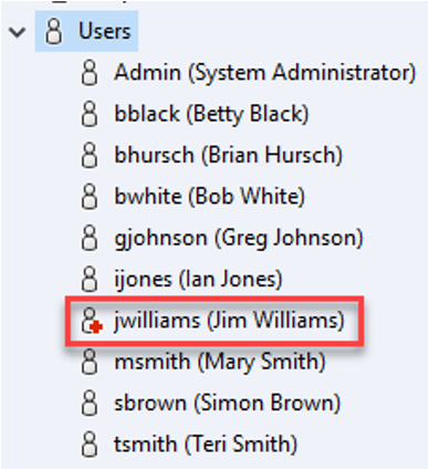 Εάν αφαιρέσετε έναν χρήστη από την registry ο οποίος εξακολουθεί να υπάρχει σε κάποιο PDM Vault, θα εμφανιστεί δίπλα του ένα κόκκινο + στο administration tool