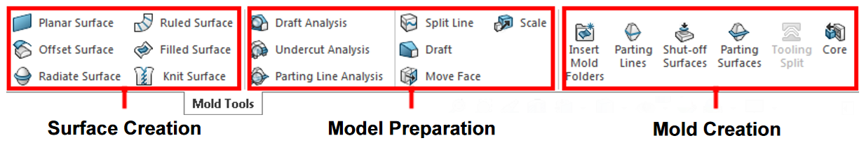 - Χρησιμοποιείτε τα εργαλεία της καρτέλας “Mold Tools” στο Solidworks.