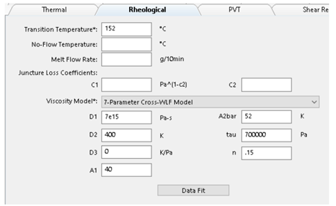 Το SOLIDWORKS Plastics χρησιμοποιεί συνήθως το μοντέλο Williams–Landel–Ferry (WLF) ή το Carreau–Yasuda για να περιγράψει αυτή τη συμπεριφορά του ιξώδους, λαμβάνοντας υπόψη επίσης: