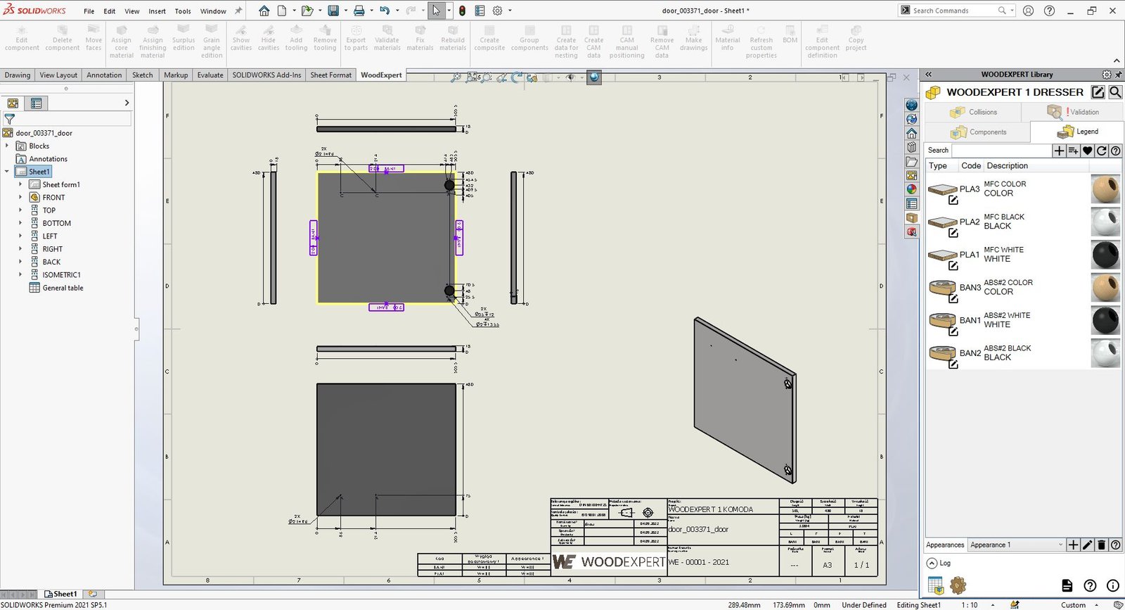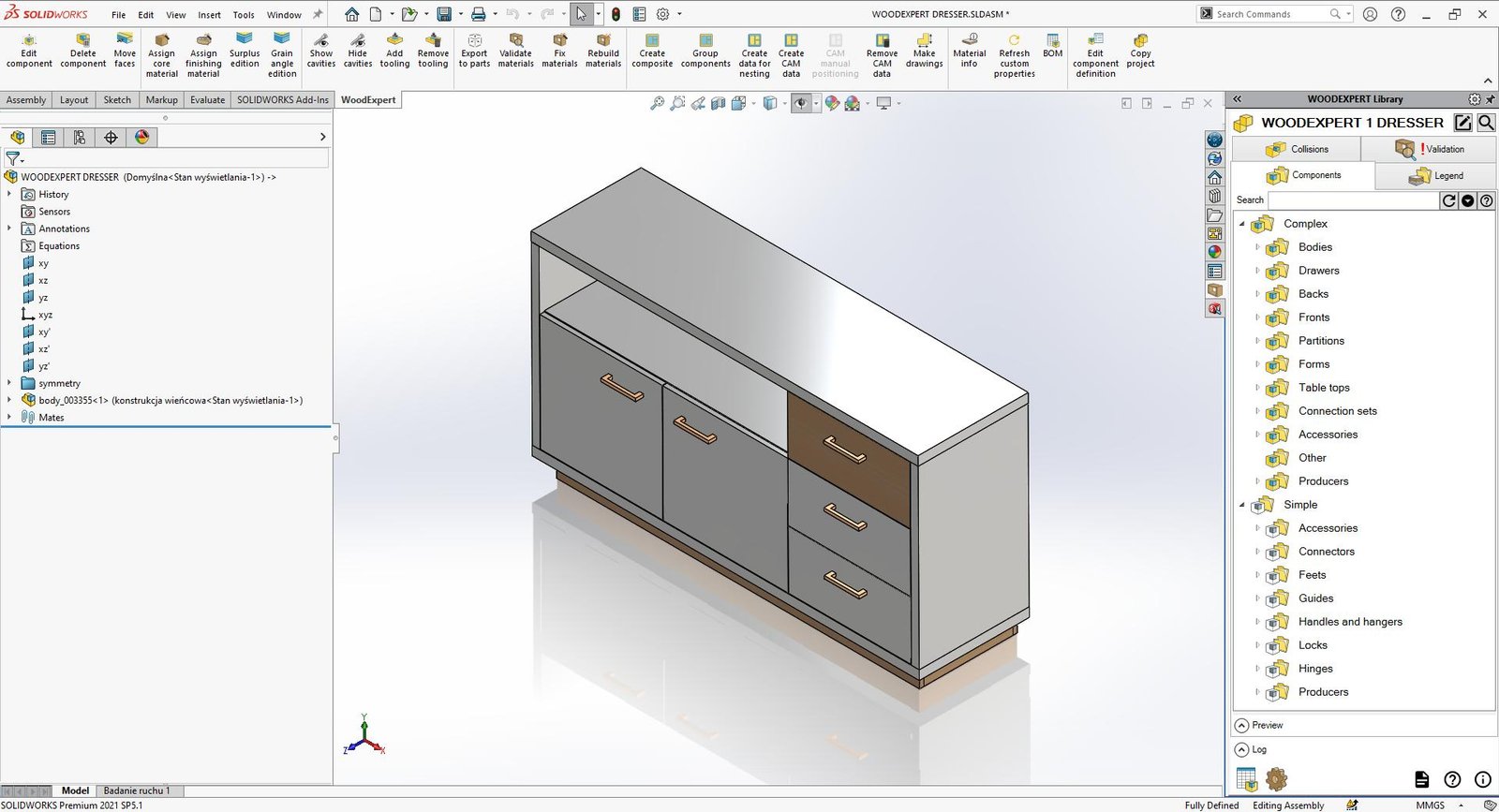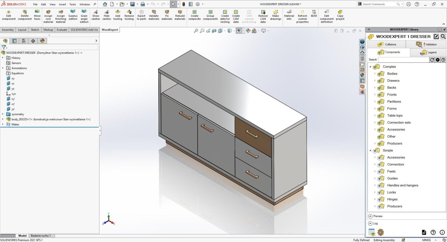 Τα μοντέλα που έχουν δημιουργηθεί στο SOLIDWORKS μπορούν εύκολα να μεταφερθούν στο WOODEXPERT για να γίνουν μέρος της βιβλιοθήκης. Αυτό μας δίνει επίσης τη δυνατότητα να δημιουργούμε BOMs και σχέδια.